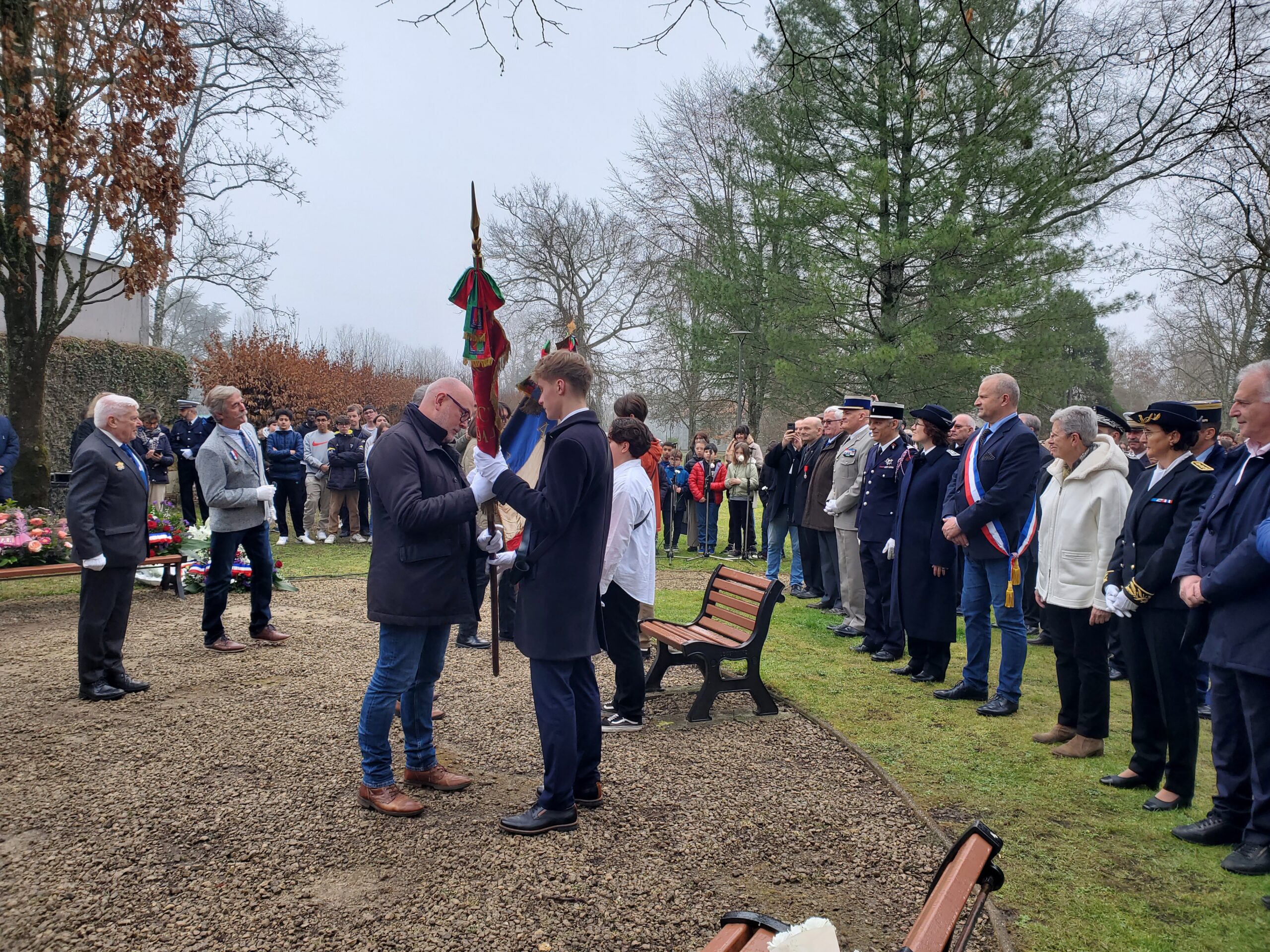 La 1ère partie de la cérémonie du 79ème anniversaire de la libération du camp d’Auschwitz a vu le Souvenir Français remettre 3 drapeaux aux établissements montois, dont celui notre lycée. Notre porte-drapeau officiel sera William Ryba, de 2nde 1 et il officiera pendant 3 ans.