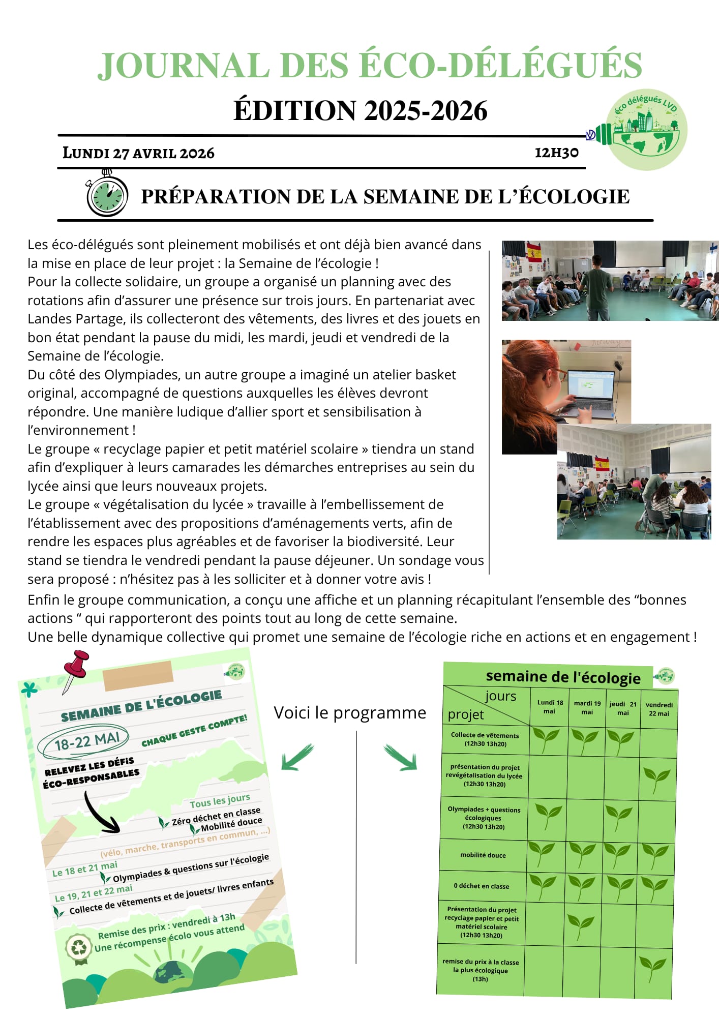 L’équipe des éco-délégués 2025/2026 vous propose le 5ème exemplaire de son journal annuel pour vous tenir informés de la mise à jour de leurs activités.