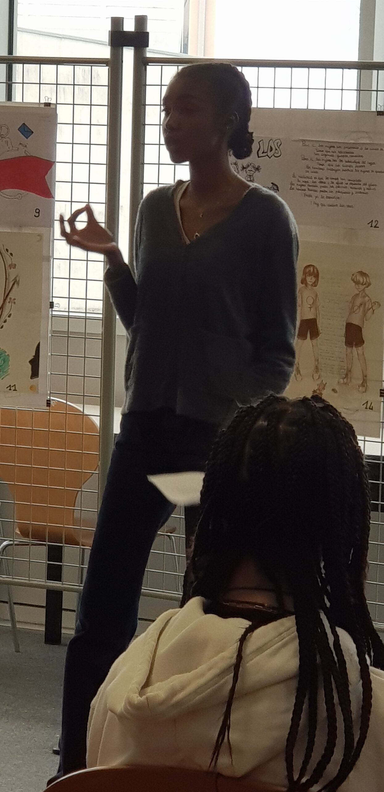 Par ordre de passage : Justine (1°7), Lou (2°1), Erwan (T°1), Dylan (1°3), Romane (1°1), Hadje Adjous (1°7), Arnaud, (1°7) se sont tous montrés brillants, très impliqués dans l’exercice, fort difficile, d’exprimer des idées et un raisonnement avec clarté et de captiver un public composé de quelques uns de leurs camarades et des nombreux professeurs qui composaient le jury.
